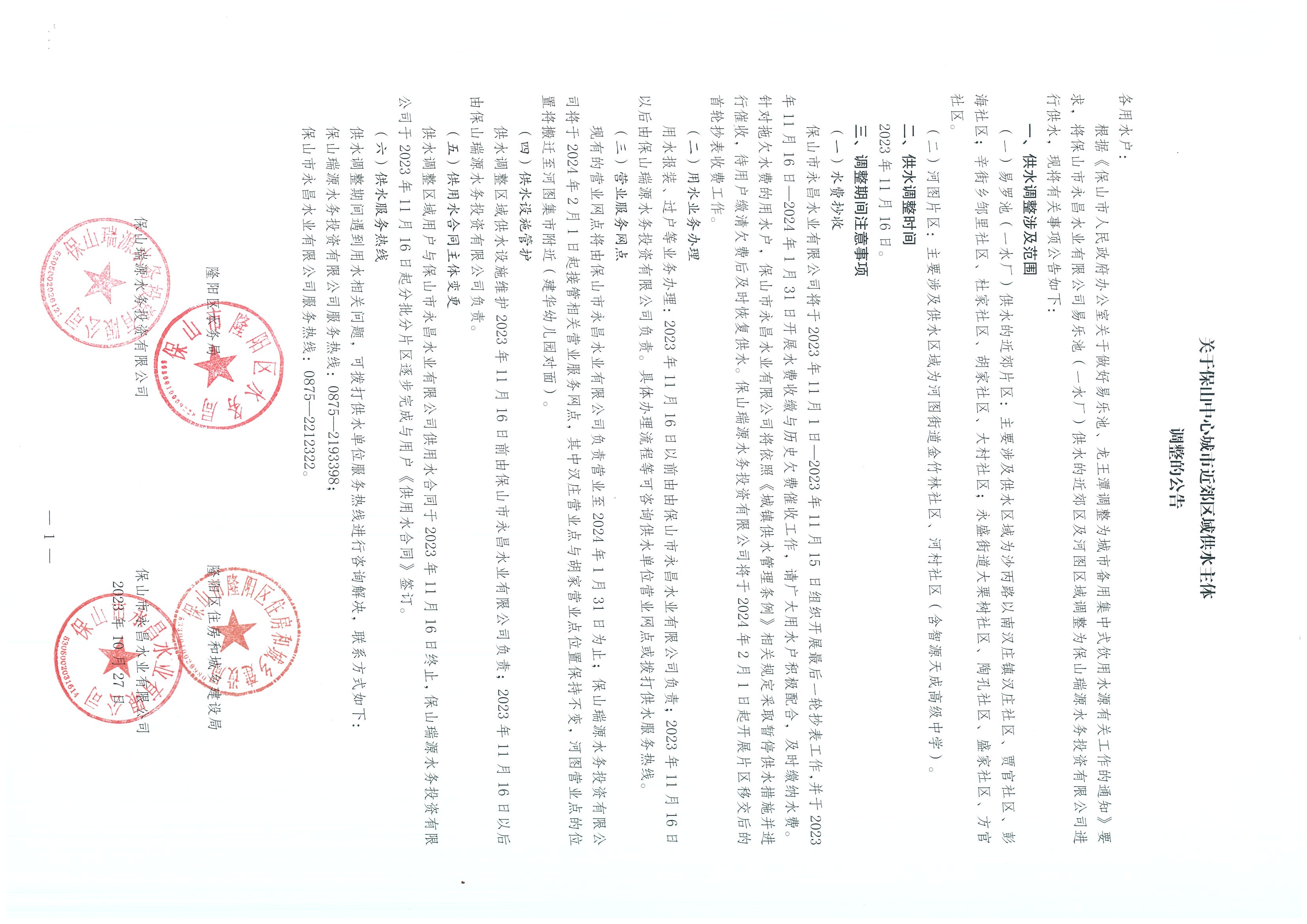 關(guān)于保山中心城市近郊區(qū)域供水主體調(diào)整公告